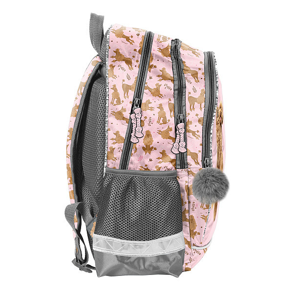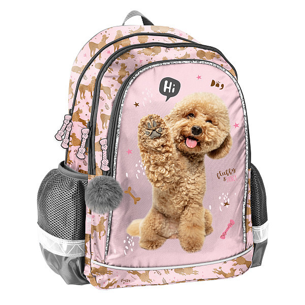 -A Kutyás ergonomikus iskolatáska, hátizsák - 2 rekeszes - Hi (PP24PU-081) a kisebb korosztály ruhatárának menő kiegészítője. A hátizsák 3 különböző méretű cipzáras rekesszel és 2 hálós oldalzsebbel rendelkezik. A gyermekek biztonságának érdekében több helyen fényvisszaverő csíkokkal van ellátva. Az erősített, profilozott hátsó rész és a puha, állítható vállpántok a hátizsák viselését rendkívül kényelmessé teszik. A tetején lévő megerősített fogantyúval kézben is vihető. A kiváló anyagnak köszönhetően az alsó része erős, strapabíró. A Kutyás iskolatáska, hátizsák vagány és praktikus, tökéletes társ a hétköznapokra vagy kirándulásokra!