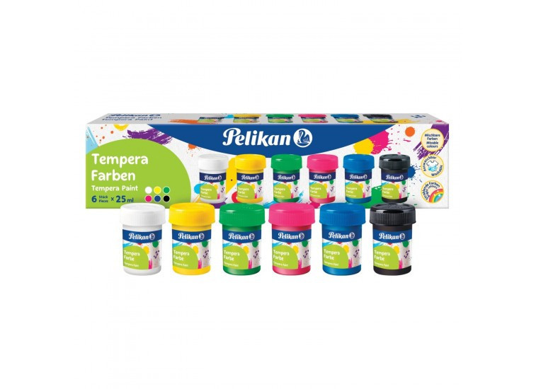 Használatra kész tégelyes tempera 6 különféle színben, további hígítást nem igényel, jó fedőképességű, átfesthető, 25 ml/tégely